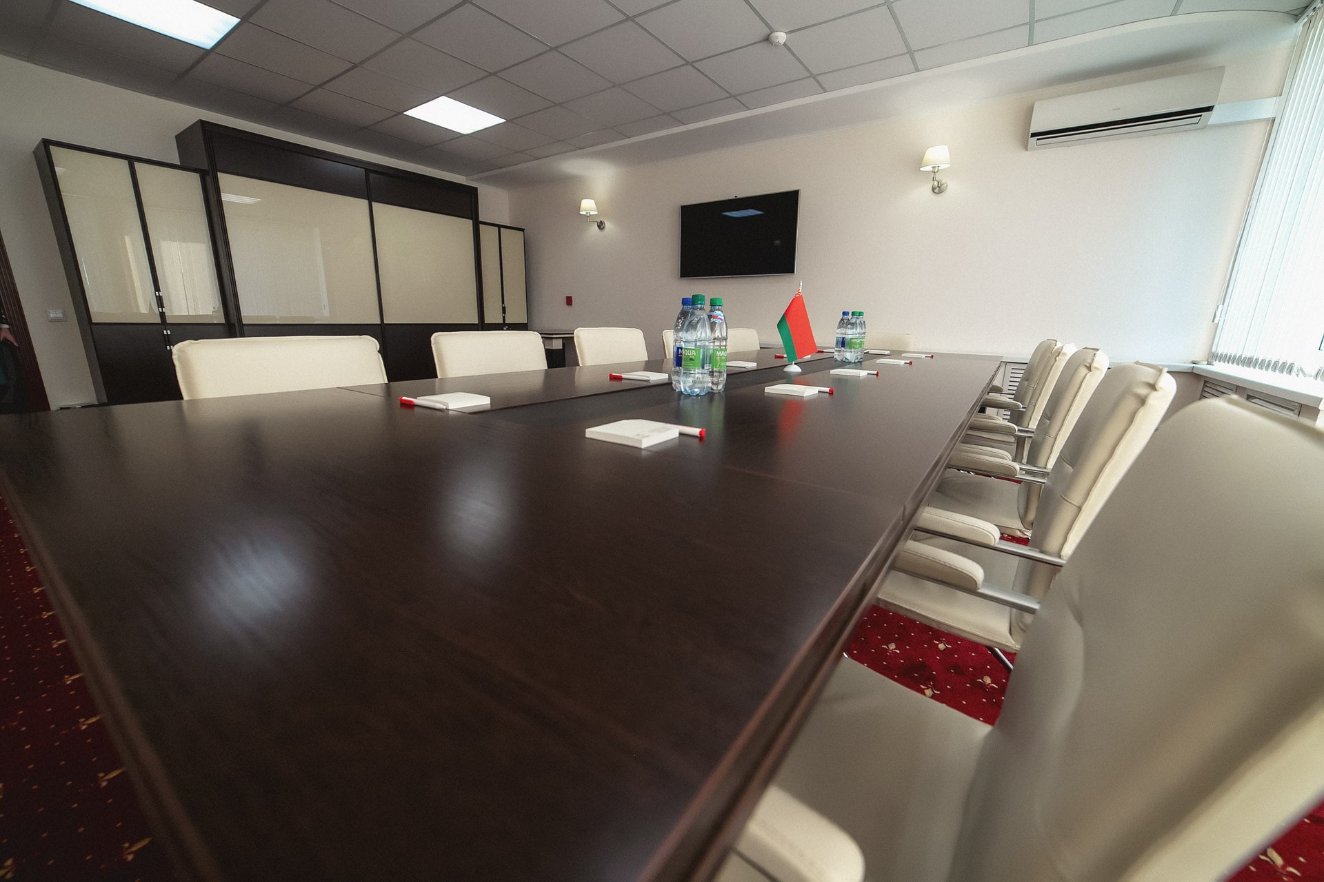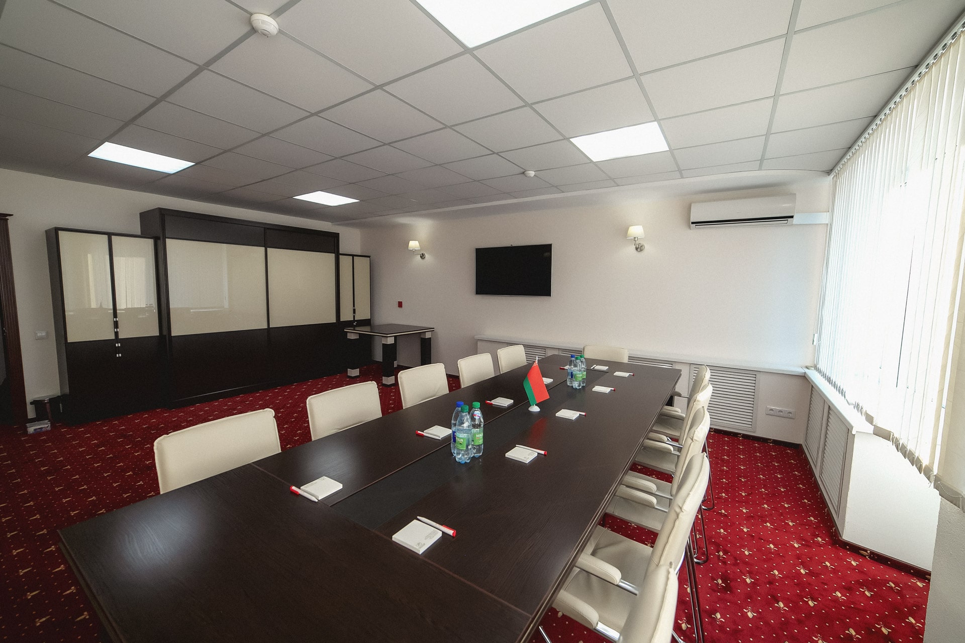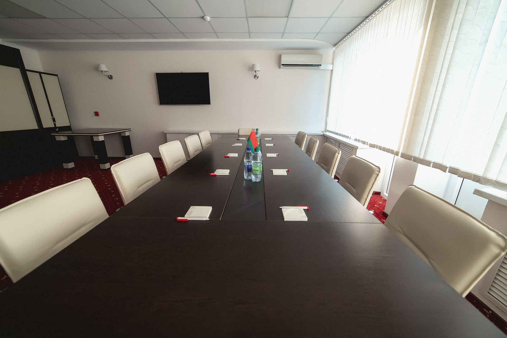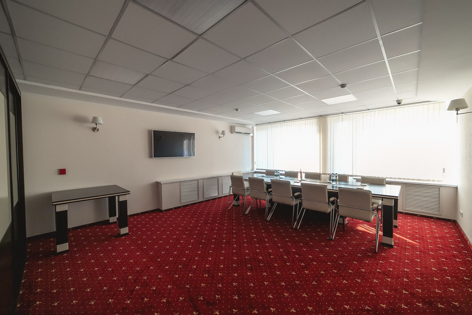 Комната переговоров вмещает до 12 гостей. Переговорная комната "Диалог" идеально подходит для проведения круглых столов и обсуждений важных вопросов в тесном кругу коллег и партнёров. Комната оснащена всем необходимым презентационным оборудованием и удобной современной мебелью. К услугам организаторов переговоров: ЖК-панель., флипчарт, бесплатный Wi-Fi, система кондиционирования, возможность организации кофе-брейков и фуршетов.